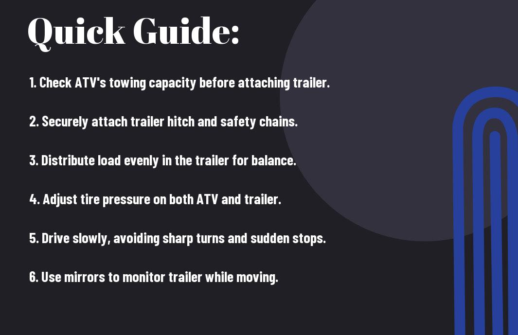 Clearly, towing a trailer with your ATV requires careful consideration of several factors to ensure safe operation. Key points to keep in mind include: