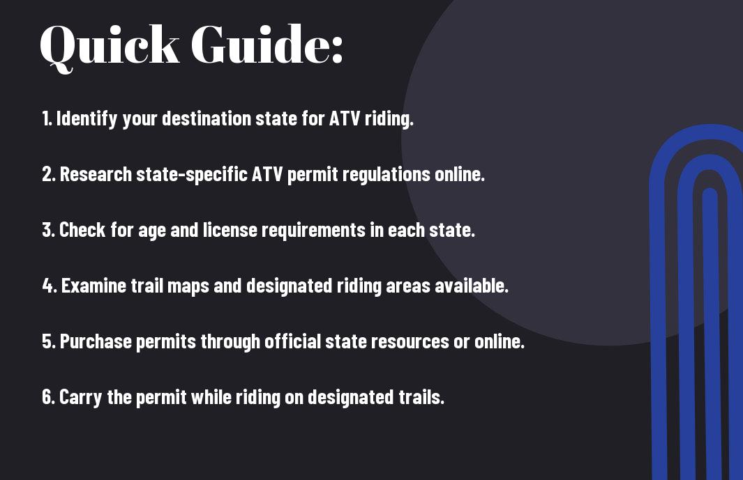 While navigating the process of obtaining your ATV trail permits, it’s imperative to follow a series of steps to ensure compliance with state regulations. This guide will outline the necessary actions you need to take, from research to application submission.